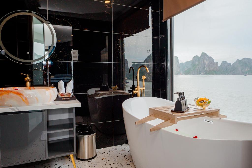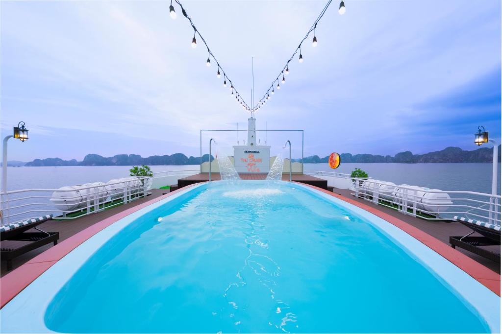 The rooftop offers the perfect open space to admire the panoramic beauty of Lan Ha Bay, featuring a sky bar and a unique boat-shaped jacuzzi where guests can relax, soak, and enjoy the incredibly relaxing sunset or sunrise.Activities