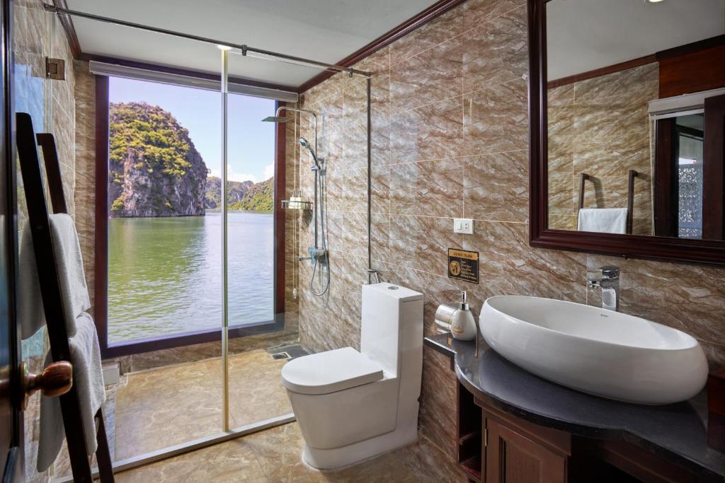 The 5-star Verdure Lotus Premium Cruises, like a fragrant lotus flower amidst the sun-drenched heritage, is ready to take guests on a journey to explore the entire Halong Bay and Lan Ha Bay complex, with its poetic and majestic beauty - one of the most stunning landscapes and a source of pride for Vietnam. The cruise ship currently offers 18 elegantly designed cabins, along with an open-air restaurant and bar with a capacity of 48 guests.