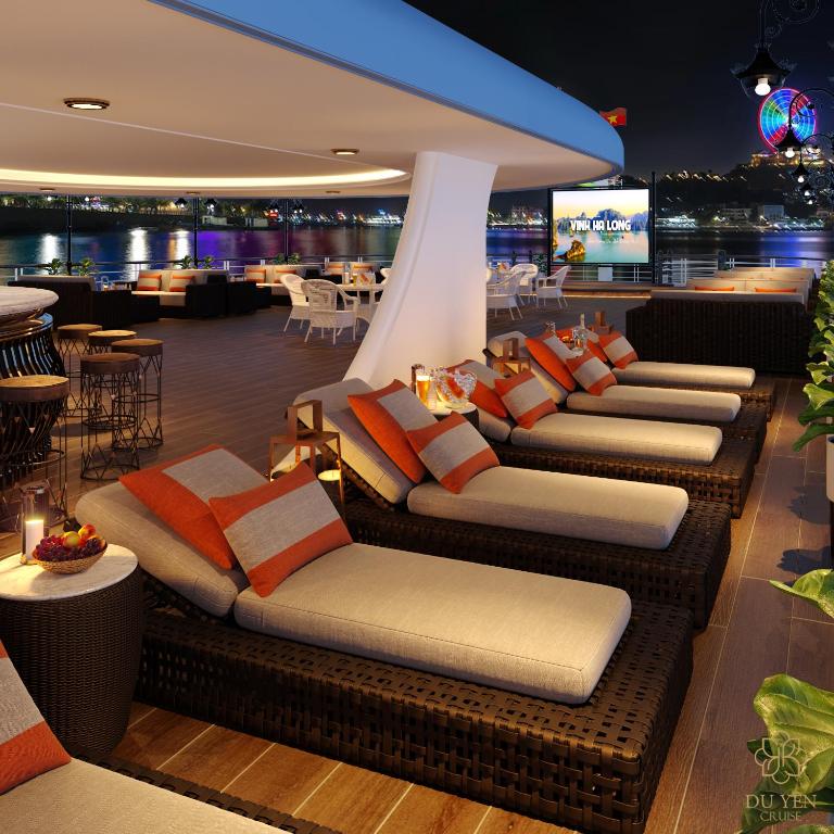 Du Yen cruise ship – a masterpiece of the Orient, imbued with a mystical spirit, is crafted to reveal enchanting journeys through the East. Every design detail is a delicate touch, steeped in traditional essence and cultural imprint, like a tapestry woven from countless fairy tales. On Du Yen, guests not only drift across the waters of Ha Long Bay and Lan Ha Bay, but also immerse themselves in a world overflowing with artistic flair and warm hospitality.Activities
