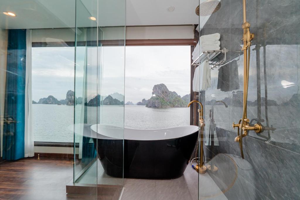 The rooftop offers the perfect open space to admire the panoramic beauty of Lan Ha Bay, featuring a sky bar and a unique boat-shaped jacuzzi where guests can relax, soak, and enjoy the incredibly relaxing sunset or sunrise.Activities
