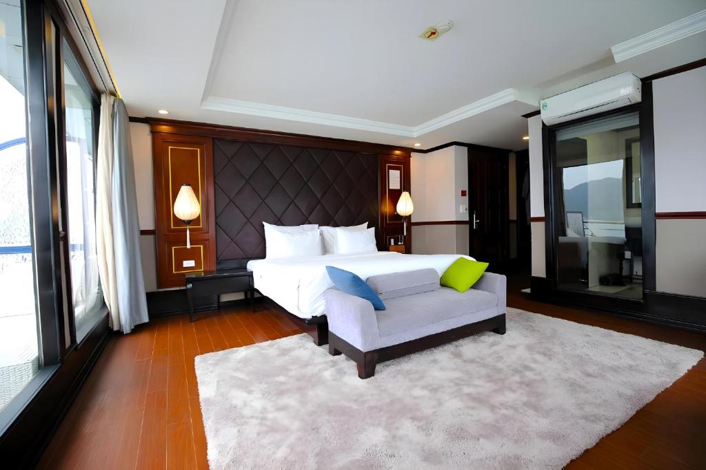 The 5-star Verdure Lotus Premium Cruises, like a fragrant lotus flower amidst the sun-drenched heritage, is ready to take guests on a journey to explore the entire Halong Bay and Lan Ha Bay complex, with its poetic and majestic beauty - one of the most stunning landscapes and a source of pride for Vietnam. The cruise ship currently offers 18 elegantly designed cabins, along with an open-air restaurant and bar with a capacity of 48 guests.